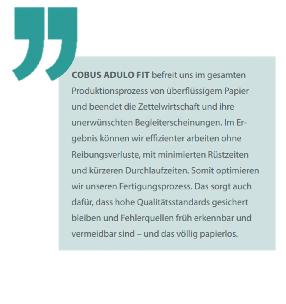 Wir von der COBUS ADULO sind ihr erfolgreicher Wegbegleiter im Bereich digitale Unternehmensprozesse. Gehen Sie mit uns den nächsten Schritt und digitalisieren Sie Ihre Produktion. Unsere Softwarelösungen haben sowohl kleine als auch mittelständische Unternehmen bereits erfolgreich in der Anwendung!