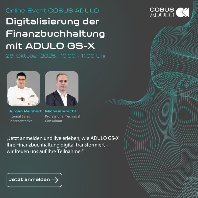 Am Dienstag, 28. Oktober 2025, laden wir Sie herzlich ein, in nur 60 Minuten die Zukunft der digitalen Buchhaltung mit ADULO GS-X live zu erleben.